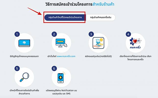 à¸à¸¥ ภลà¸à¸"าภ2 ร าà¸à¸ าภà¸à¸£ à¸à¹à¸à¸£à¸à¸à¸²à¸£à¸à¸à¸¥à¸°à¸à¸£ ภfrom news.thaipbs.or.th กระทรวงการคลัง ได้อนุมัติให้ประชาชนผู้ได้รับสิทธิลงทะเบียน www.คนละครึ่ง.com จำนวนกว่า 7 ล้านสิทธิสามารถโอนเงินของธนาคากรจำนวน 10. โค้งสุดท้ายของการสมัครเป็น 'ร้านค้า' รับเงิน 'ม33 เรารักกัน' 'เราชนะ' 'คนละครึ่ง' ก่อน 31 มี.ค. เปิดแล้วสำหรับการทะเบียนร่วมโครงการ คนละครึ่งสำหรับ ร้านค้าโดยรัฐจะให้เงินสนับสนุนการใช้จ่ายคนละไม่เกิน 3,000 บาท เพื่อเอาไปใช้จ่ายซื้อของ. หลังจากที่โครงการ คนละครึ่ง ได้เปิดให้ประชาชนได้ใช้โดยรัฐบาลจะจ่ายให้่ 150 บาทต่อวัน ตั้งแต่วันที่ 23 ต.ค.ที่ผ่านมา ขณะที่. 15 ล้านคนซื้อของในร้านค้ารายย่อย เปิดให้ร้านค้าลงทะเบียนแล้ววันนี้ (1 ต.ค.63 ) ขั้นตอนง่าย ๆ ไม่. ร้านค้าที่อยากลงทะเบียนคนละครึ่ง สามารถทำได้เพียงแค่ 3 ขั้นตอนจบภายใน 1 วัน แค่นี้ก็กางกระเป๋าตังค์รอจากผู้ใช้สิทธิ์แล้ว. 2564 รับเงินคนละ 3,000 บาท เพื่อช่วยค่าใช้จ่าย 50% เป็นเวลา 6 เดือน สมัครร่วมโครงการคนละครึ่ง 3 เคล็ดลับง่ายๆ สำหรับร้านค้า สามารถตรวจสอบคุณสมบัติ ได้ใน 1 วัน โดยระบบจะแจ้งผล.